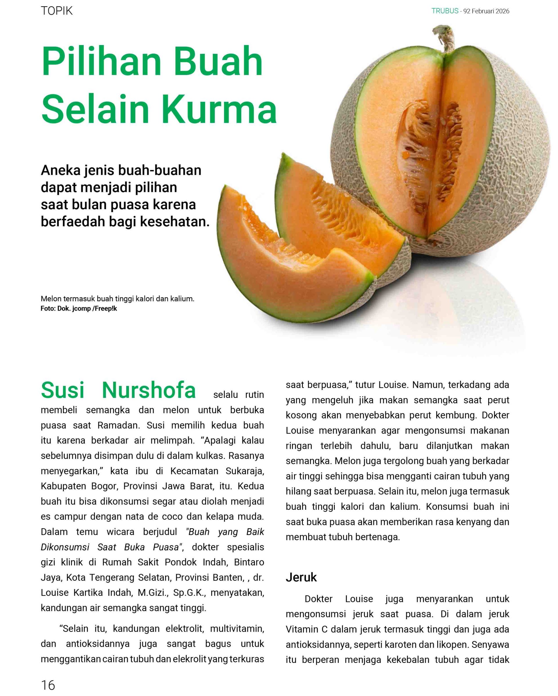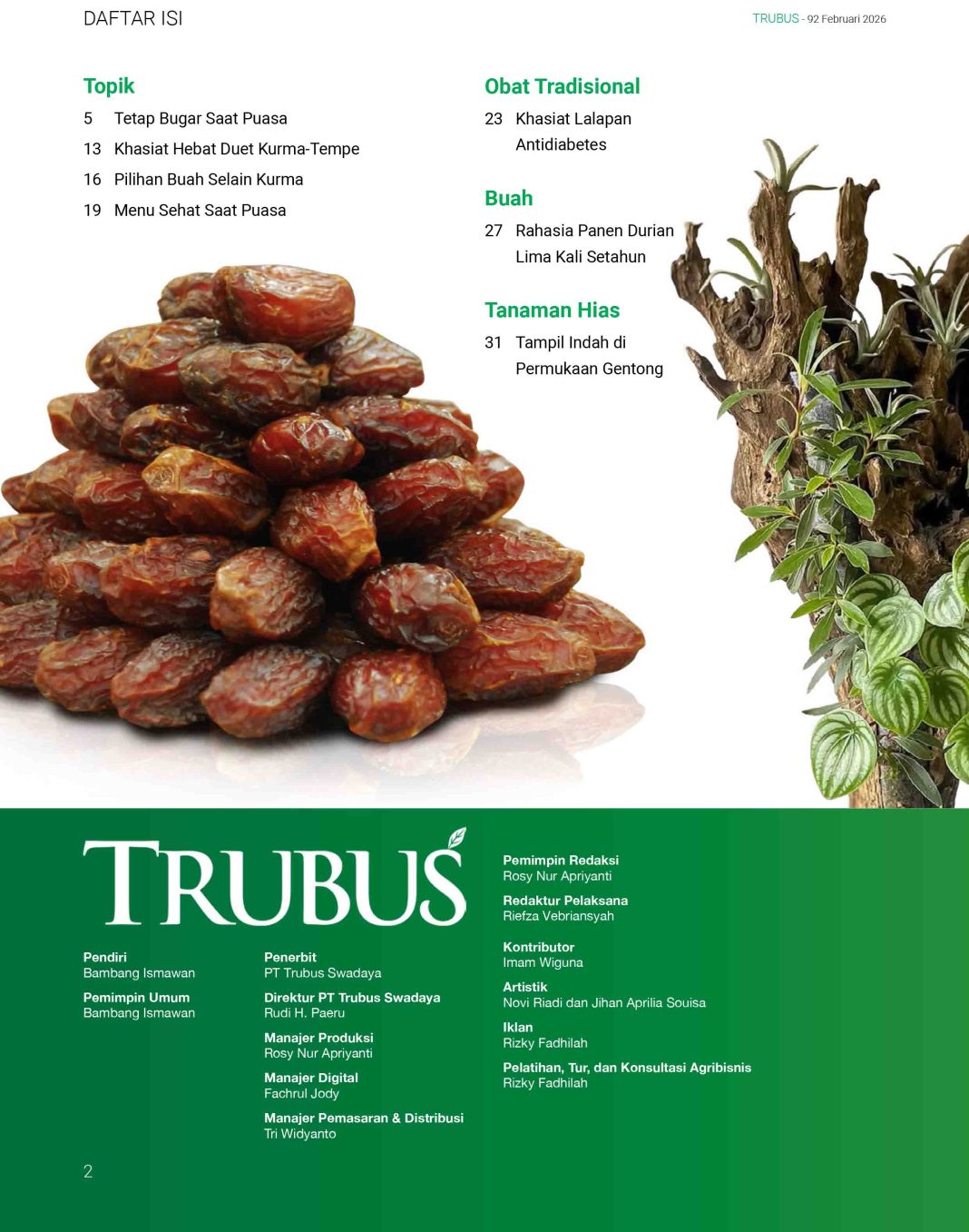 Selamat membaca. Sahabat Trubus dan mari jalani Ramadan ini dengan penuh semangat.